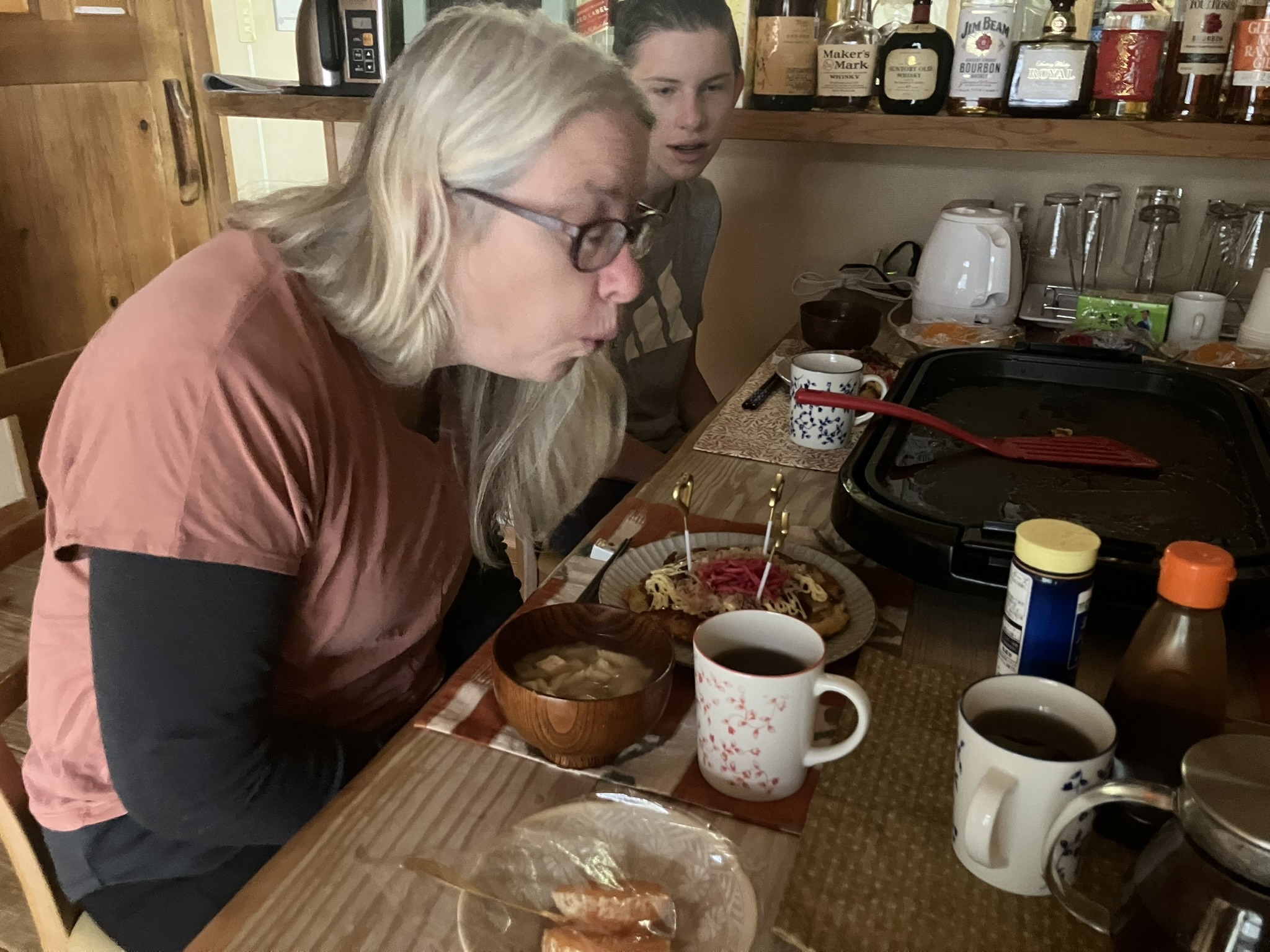 ご主人は以前日本に来られたことがありますが奥さん子供たちは初めての訪問で、ここアビーロードの4泊で沢山の日本文化に触れられました。難波での相撲ショー、京都での着物着付け神社仏閣散策、大阪でのショッピング、奈良公園散策、、。当初宿泊先を決めるにあたり奥さんが京都奈良大阪のアクセスが良い場所をと色々検索されこちらをご予約頂きました。有難いことです!最終日、ちょうど奥さんのバースデイとの事で皆でバースデイソング♫を歌ってお祝いをしました。ロウソクをお好み焼きにさしてはる絵が最高でした(笑)